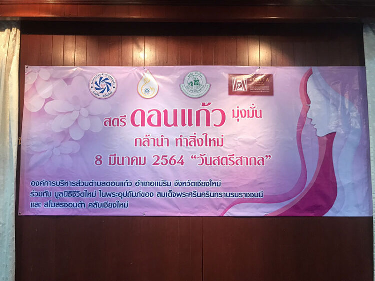 วันที่ 8 มีนาคม วันสตรีสากล มูลนิธิชีวิตใหม่ฯร่วมกับ สโมสรซอนต้าเชียงใหม่ สนับสนุนกิจกรรมในโครงการ" แม่ศรีเรือน " เพื่อพัฒนาศักยภาพแกนนำสตรีให้เกิดการเรียนรู้การเป็นแม่ศรีเรือนสำหรับผู้หญิงไทยรุ่นใหม่  แก่กลุ่มแกนนำสตรีในชุมชนตำบลดอนแก้ว จำนวน 60 คน ณ ห้องประชุมบุญญาภรณ์องค์การบริหารส่วนตำบลดอนแก้ว อำเภอแม่ริม จังหวัดเชียงใหม่
