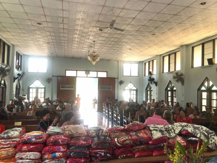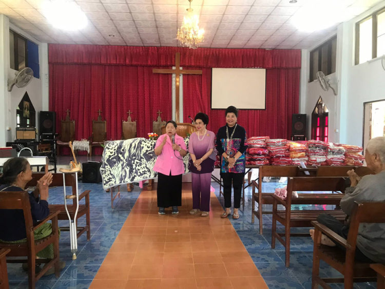 วันที่ 13 พฤศจิกายน ดร. สมบูรณ์ สู่ประเสริฐ ประธานมูลนิธิชีวิตใหม่ฯ นำ คุณหญิงโรส – คุณรัญชา บริบาลบุรีภัณฑ์ กรรมการที่ปรึกษา มูลนิธิฯ มอบผ้าห่ม ให้แก่ผู้พิการ ผู้สูงอายุ จำนวน 100 คน พร้อมเงินสดคนละ 20 บาท ณ โบสถ์คริตจักรไตรสภาวคาม อำเภอเชียงดาว จังหวัดเชียงใหม่